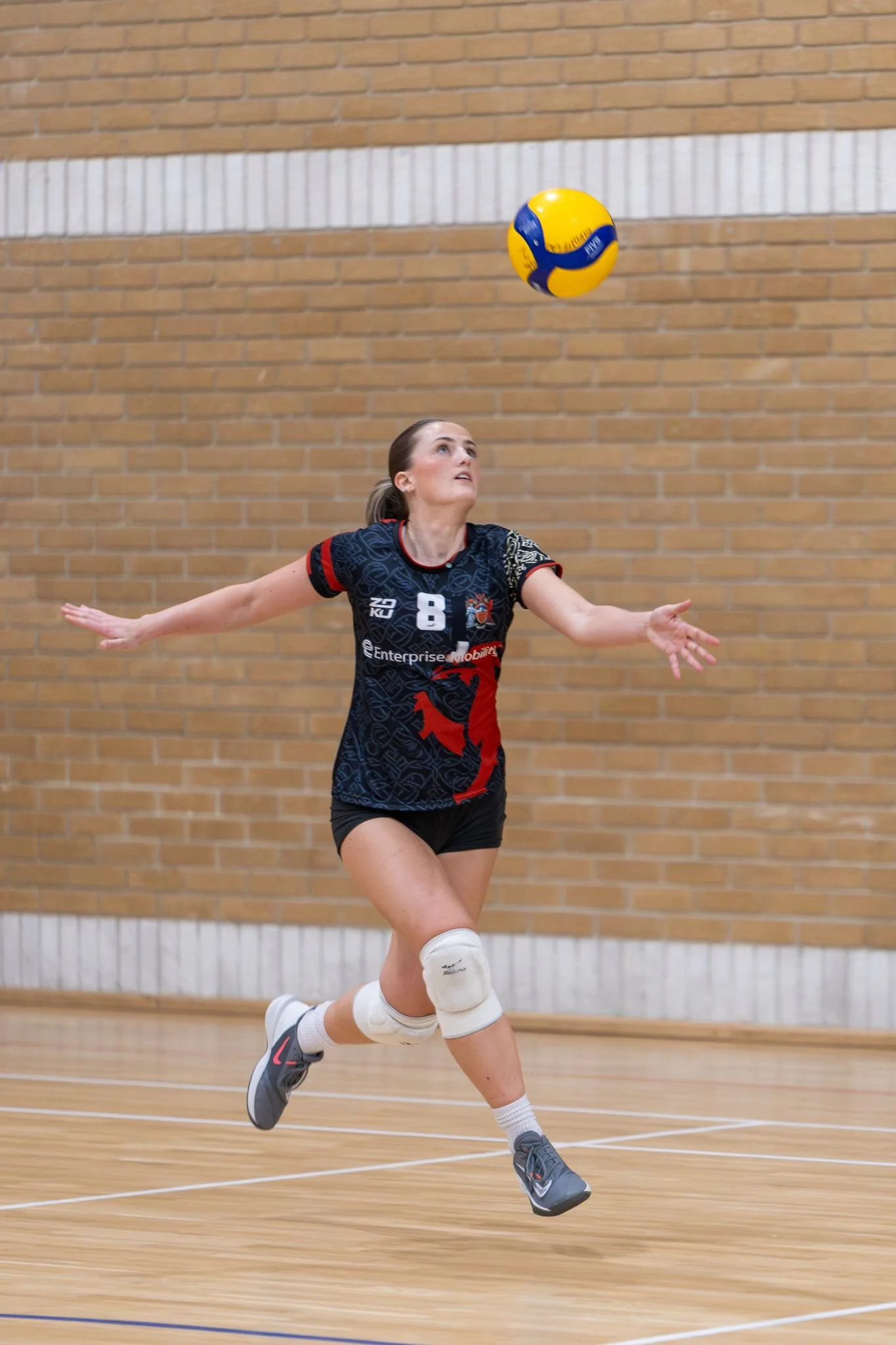Beth Morgan preparing to receive the volleyball / Credit: Jon Cornish