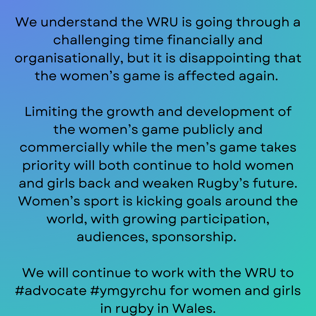 Cymru Women’s Sport reacts to the news that changes to the women’s game must wait while changes to the men’s game continues.